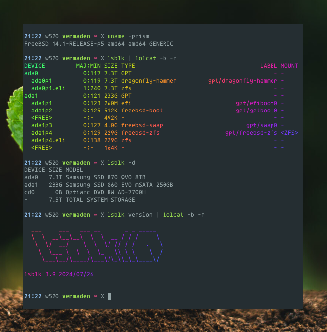在 FreeBSD 上以 lsblk(8) 风格列出块设备