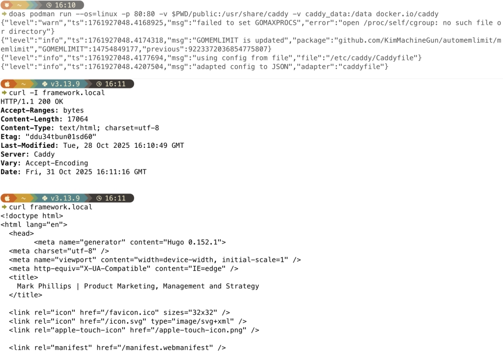 $ doas podman run --os=linux -p 80:80 -v $PWD/website:/usr/share/caddy -v caddy_data:/data docker.io/caddy